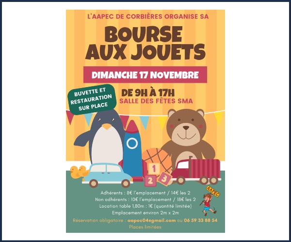 Bourse aux jouets organisée par l’AAPEC, avec restauration et buvette sur place.