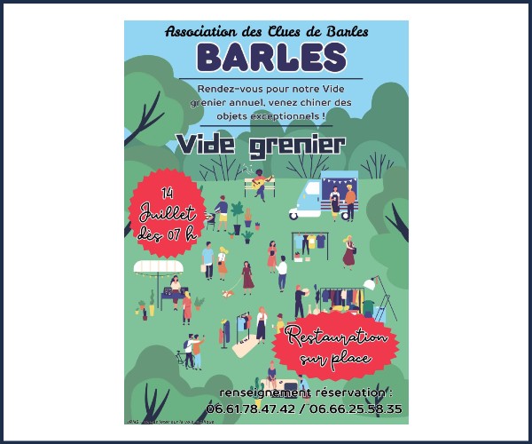 Vide greniers annuel de l’association des Clues de Barles, emplacement gratuit et restauration sur place.