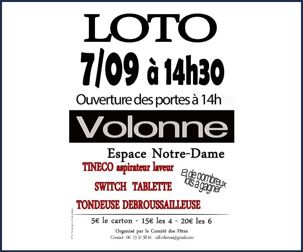 Loto à Volonne ouverture des portes à 14h00, à l'espace Notre Dame.