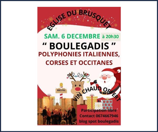 Notre groupe Boulegadis sera en concert le samedi 6 décembre à l'Église du Brusquet.