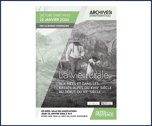 Lecture d’archives, La vie rurale aux Mées Jan 22 18h00 - 19h30 Lecture d’archives, La vie rurale aux Mées Entrée libre