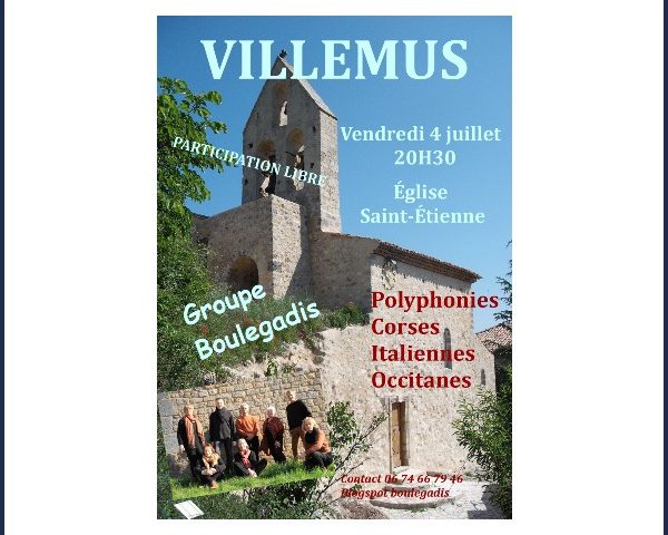 Voir plus30/06/2025 Polyphonies Corses, Italiennes, Occitanes par le Groupe Boulegadis.