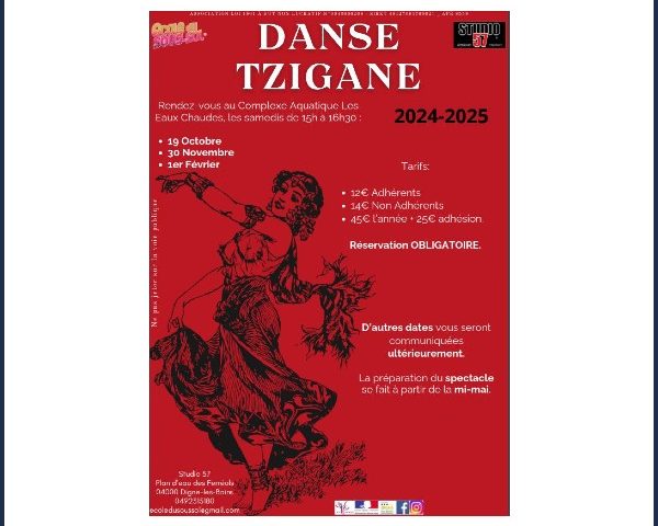 Voir plus20/11/2024 Rendez-vous au Complexe Aquatique Les Eaux Chaudes, les samedis de 15h00 à 16h30, pour un stage de danse tzigane.