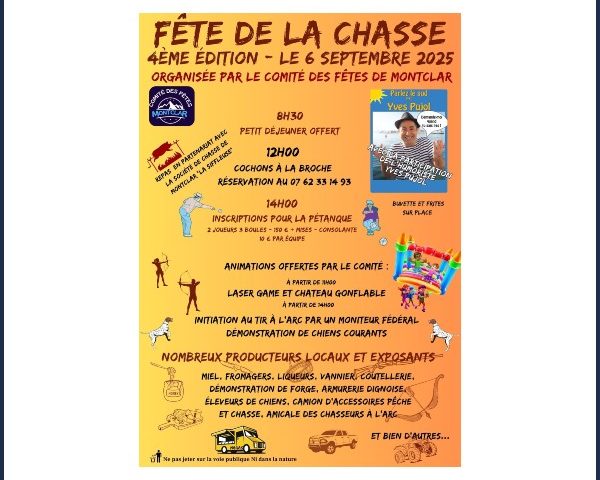 Voir plus26/07/2025 La Fête de la Chasse à Montclar, en présence de l'humoriste Yves Pujol (parlez-vous le sud ? Demande-moi quand tu sais pas…)