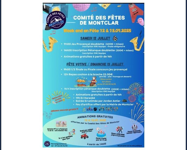 Voir plus03/07/2025 Fête votive les 12 et 13 juillet, organisé par le Comité des Fêtes.