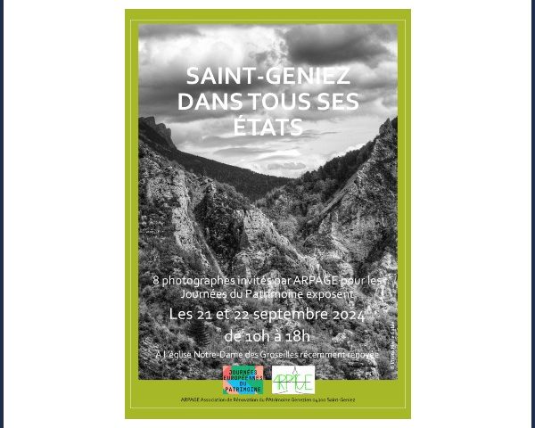 Voir plus21/08/2024 8 photographes seront exposés (3 photos de chacun); un prix ARPAGE et un prix du public seront décernés.