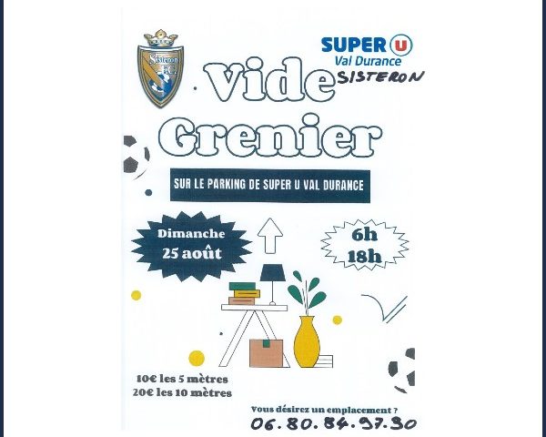 Voir plus14/08/2024 Vide greniers organisé par le Sisteron Football Club.