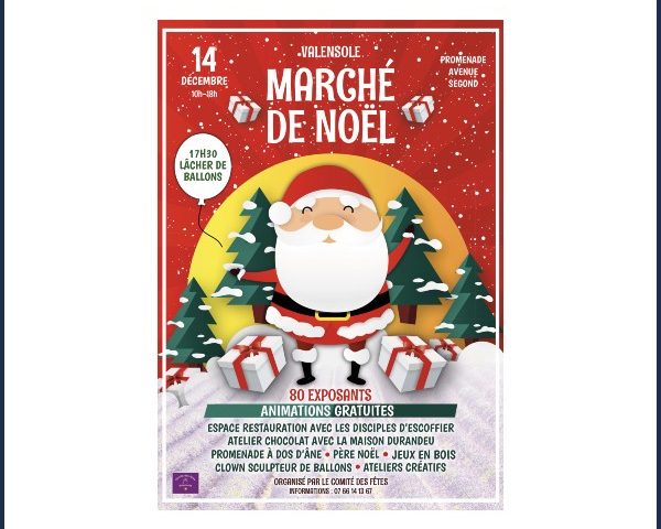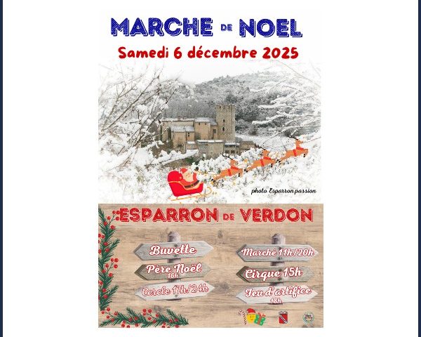 Voir plus11/11/2025 Dimanche 14 décembre Marché de Noël Promenade avenue Segond Valensole de 10h00 à 18h00.
