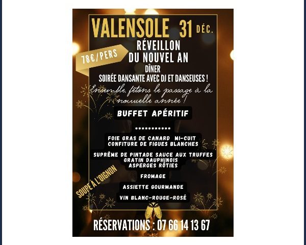Voir plus11/11/2025 Réveillon du nouvel an 31 décembre salle polyvalente de Valensole.