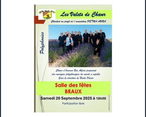 Voir plus09/09/2025 "Les Valets de Choeur" chanteront pour nous à cappella, un répertoire de chants religieux et profanes, du monde entier et de toutes les époques.