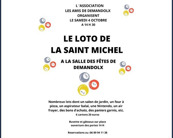 Voir plus08/09/2025 L'association "Les Amis de Demandolx" organisent le loto de la Saint Michel le samedi 4 octobre à 14h30.