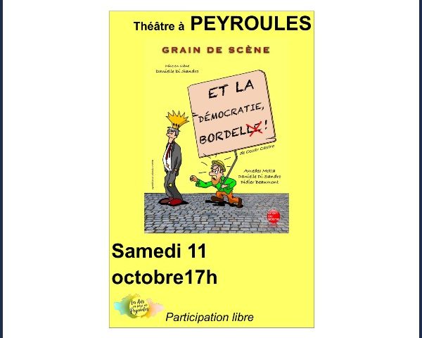 28/09/2025 Samedi 11 octobre à 17h00 à Peyroules, nous vous proposons d'assister à une pièce de théâtre savoureuse avec des comédiens hors pair !