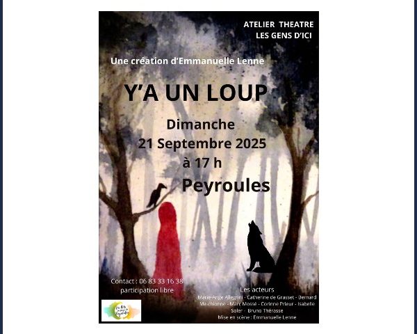 Voir plus07/09/2025 Un spectacle de l'atelier théâtre des Gens d'ici intitulé "Y à un loup".